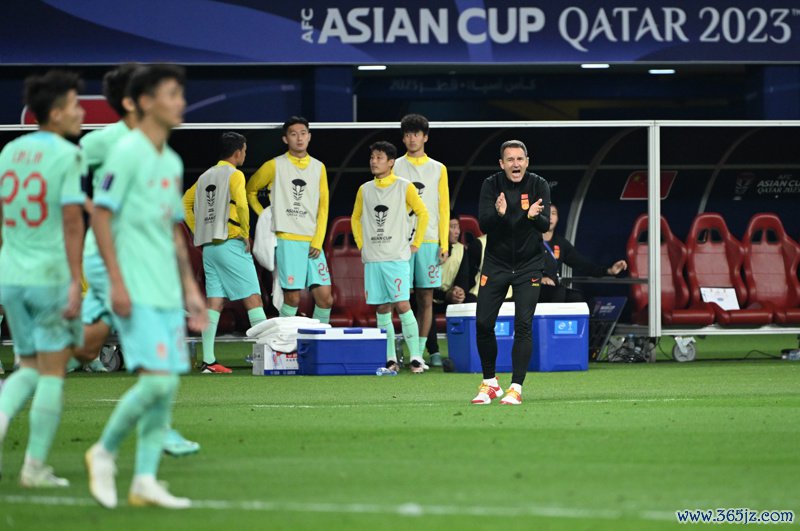 2024年1月22日,中国队主教师扬科维奇(右)在比赛中带领。\n 当日,在卡塔尔多哈哈里发国外通顺场举行的男足亚洲杯小组赛A组比赛中,中国队对阵卡塔尔队。\n 新华社记者 孙凡越 摄
