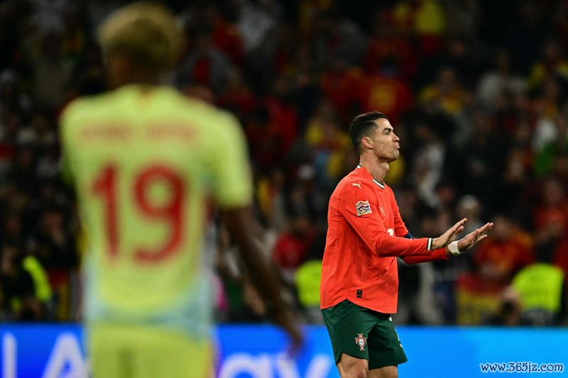 6月8日,葡萄牙队球员克里斯蒂亚诺·罗纳尔多(右)在西班牙队球员亚马尔身旁庆祝进球。\n 当日,在德国慕尼黑举行的欧国联A级联赛决赛中,葡萄牙队与西班牙队在通例时刻和加时赛2比2战平,最终在点球大战中,葡萄牙队5比3打败敌手,夺得冠军。\n 新华社/法新